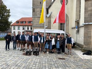 Der Betriebsausflug des Pfarrteams der Pfarreiengemeinschaft Eschenbach-Kirchenthumbach begann mit der gemeinsamen Abfahrt in einem gemieteten Kleinbus, in dem Pater Johannes Ernstberger selbst als Fahrer hinter dem Lenkrad saß. Mit dem Team aus Pater Johannes, Pfarrsekretärin Michaela Zeitler, Kirchenmusiker Joachim Steppert aus Eschenbach, Mesner Cosimo Santoro sowie den Mesnerinnen Elisabeth Hartwanger und Anni Dietel und Pastoralreferent Alfred Kick ging es von Eschenbach und Kirchenthumbach los. Die erste Station führte zur Landesgartenschau in Furth im Wald, wo sich die Gruppe Zeit nahm, durch die blütenprächtigen Gärten zu schlendern und die Eindrücke auf sich wirken zu lassen. Ein vom Team besonders geschätztes Teil war der mobile Proviant, der in einem kleinen Bollerwagen verstaut war: Wurst- und Käsesemmeln, Tomaten-Mozzarella-Spieße, Weintrauben-Käse-Spieße, eine Box mit Gurken und Tomaten, Getränke und ein Kuchen für den Tag. Diese Vorratskammer ermöglichte spontane Pausen an ruhigen Plätzen und stärkte das Gemeinschaftsgefühl.